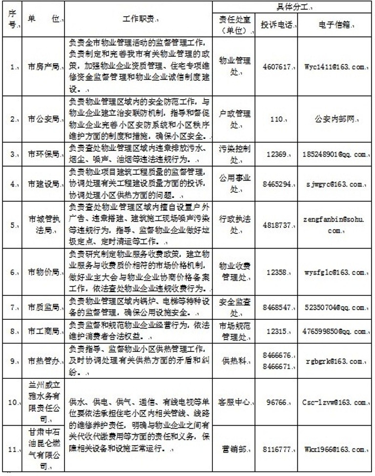 蘭州市物業(yè)管理相關(guān)責(zé)任單位及投訴電話公示